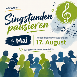 Der MGV Altdorf legt ab Mai eine Pause bei den Singstunden ein.