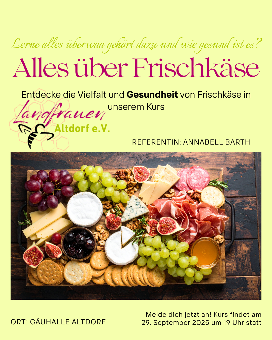 Entdecken sie die Vielfalt und Gesundheit von Frischkäse mit unserer Referentin Frau Annabell Barth.