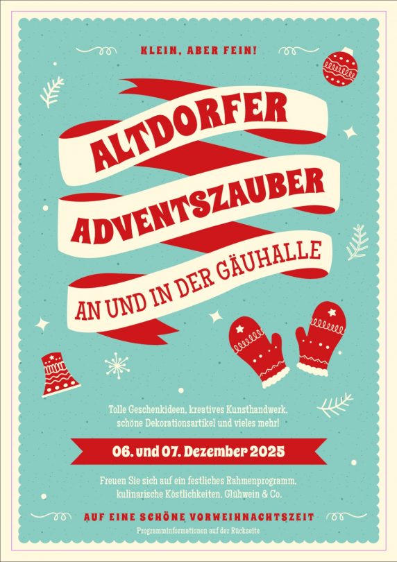 Wir möchten die Adventszeit in Altdorf gemeinsam stimmungsvoll gestalten und laden herzlich zur Teilnahme ein. Es gibt verschiedene Möglichkeiten, mitzumachen: ⭐ Adventsfenster mit Event-Charakter Ein festlich geschmücktes Fenster wird eröffnet (fester […]